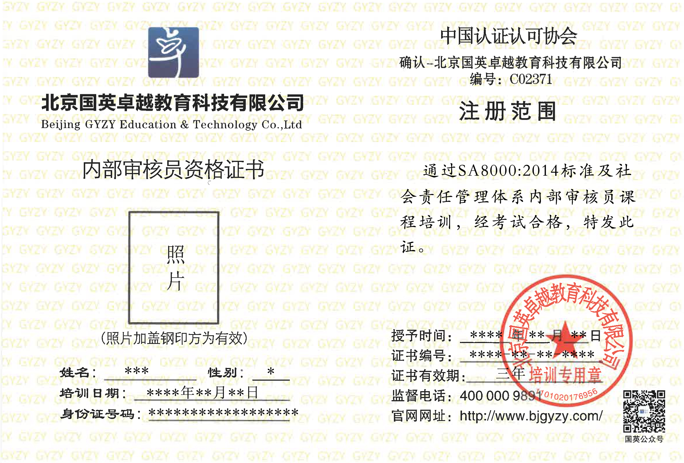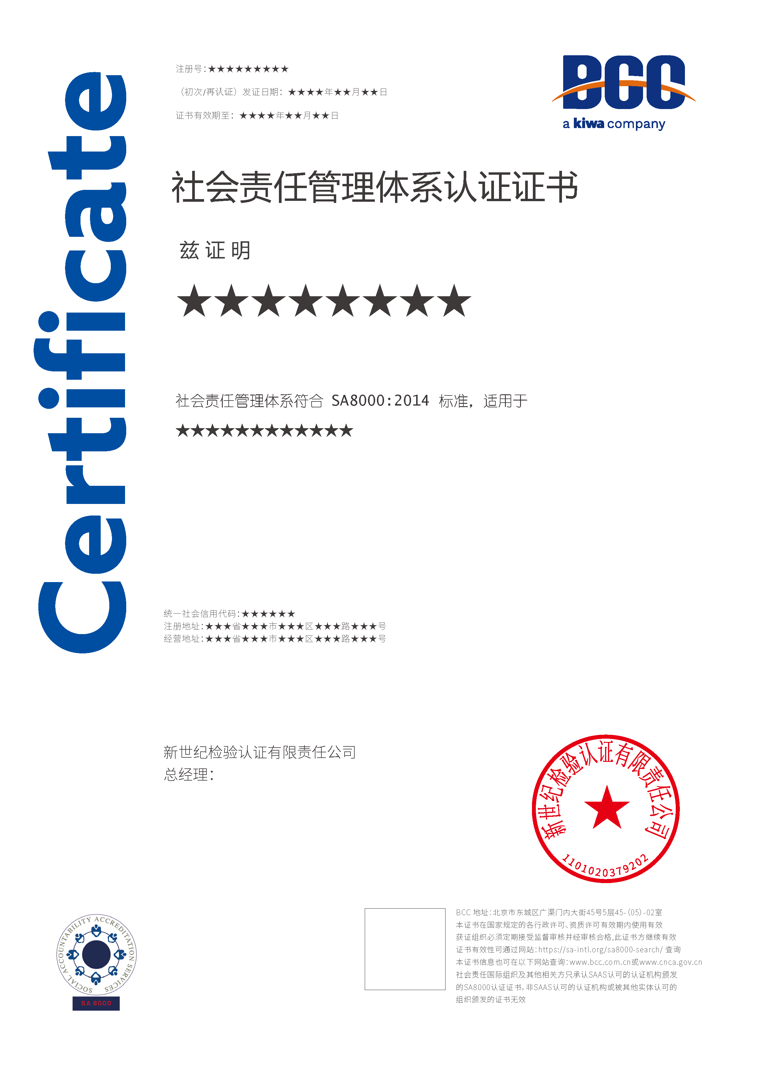 除此以外,申請社會責(zé)任管理體系認(rèn)證的企業(yè)還需提交一些輔助資料,如管理手冊和程序文件(至少應(yīng)提供認(rèn)證標(biāo)準(zhǔn)中明確要求建立的程序文件)等。