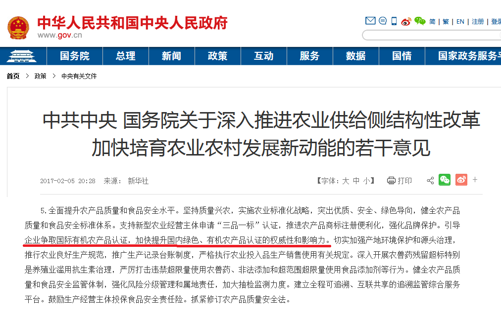 意見指出,“引導(dǎo)企業(yè)爭取國際有機(jī)農(nóng)產(chǎn)品認(rèn)證,加快提升國內(nèi)綠色、有機(jī)農(nóng)產(chǎn)品認(rèn)證的權(quán)威性和影響力。”