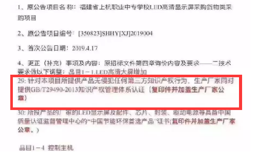 蘇州市滄浪中學校招標要求之一:產(chǎn)品生產(chǎn)廠家獲得GB/T29490-2013知識產(chǎn)權(quán)管理體系認證,3分。