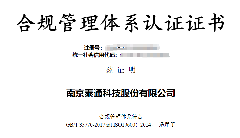 此次審核的通過,使泰通科技更加規(guī)范合規(guī)管理過程、建立合規(guī)經營價值觀、有效防范合規(guī)風險、減少違法行為發(fā)生。