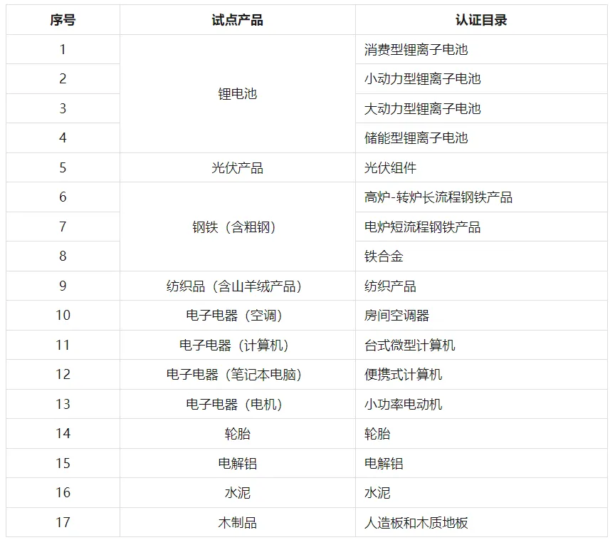 關(guān)于印發(fā)《產(chǎn)品碳足跡標(biāo)識認(rèn)證試點認(rèn)證目錄(第一批)》的通知